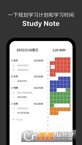 学习时间可以按科目单独记录。
