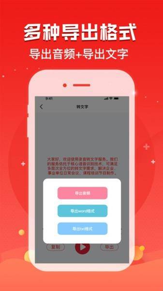 支持录音转文字、音频转文字、语音转文字、听写、语音识别、音频提取器、语音输出、语音导出。
