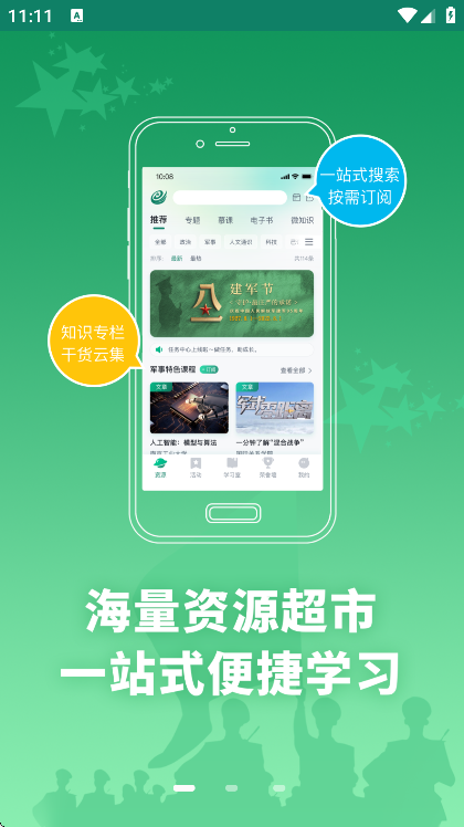 用户在此可以学习军事、科技、哲学、文学历史等内容的课程;