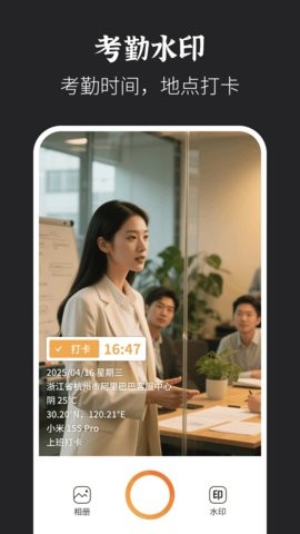 能够精准记录每一次考勤水印,精准打卡保存;