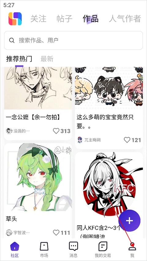 3、看其他人的作品,很多绘画爱好者在这里发表自己的二次元绘画作品,用户可以自由浏览大家的作品,获得创作灵感。