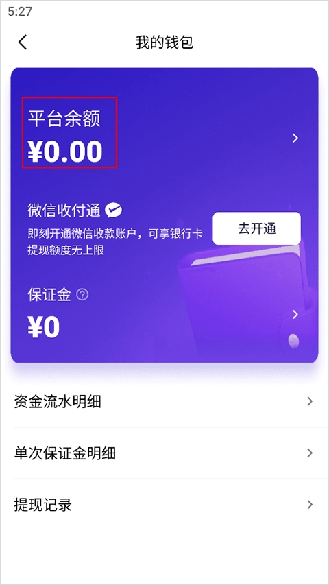 4、进入到我的钱包页面,再点击“平台余额”选项;
