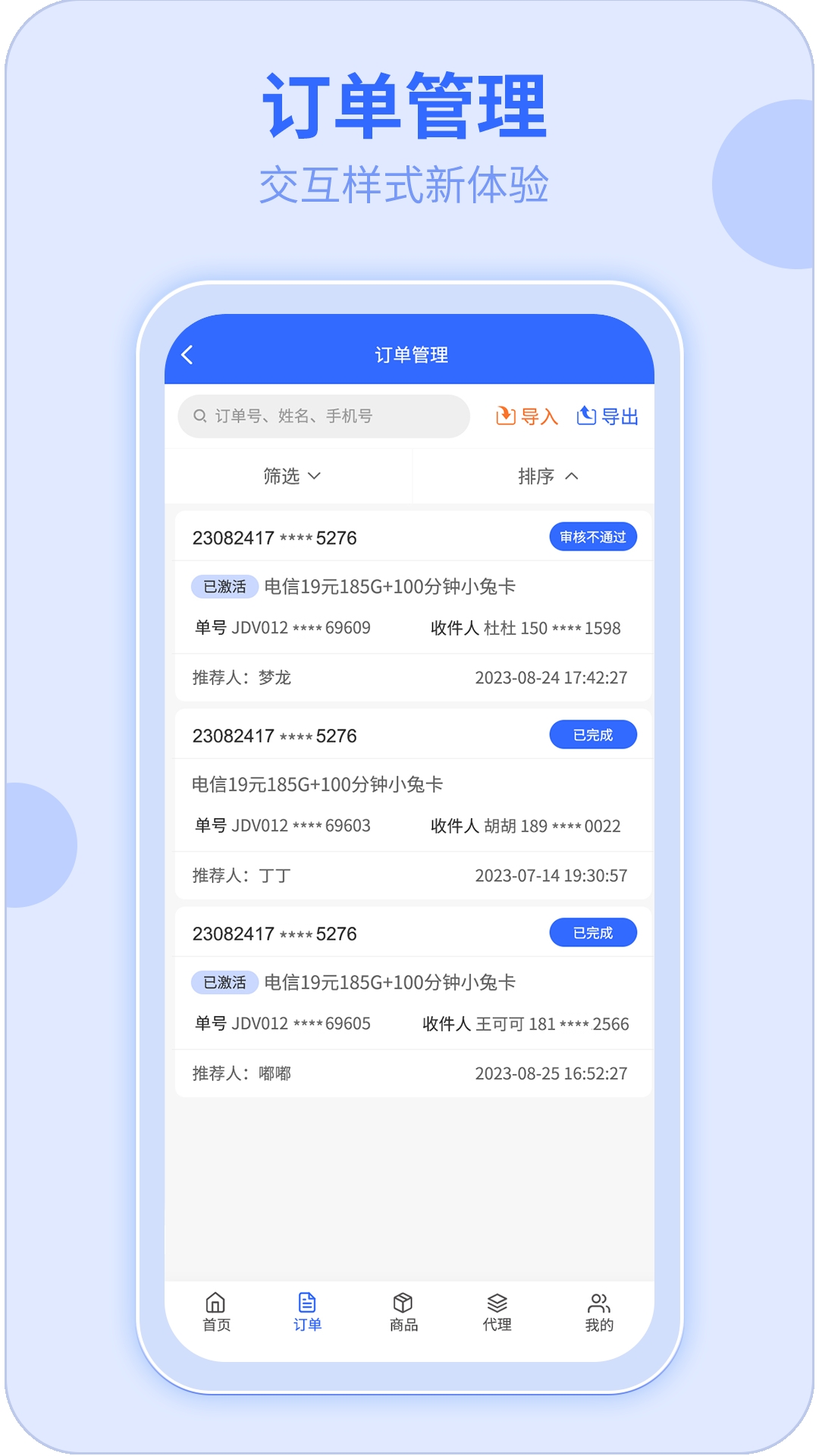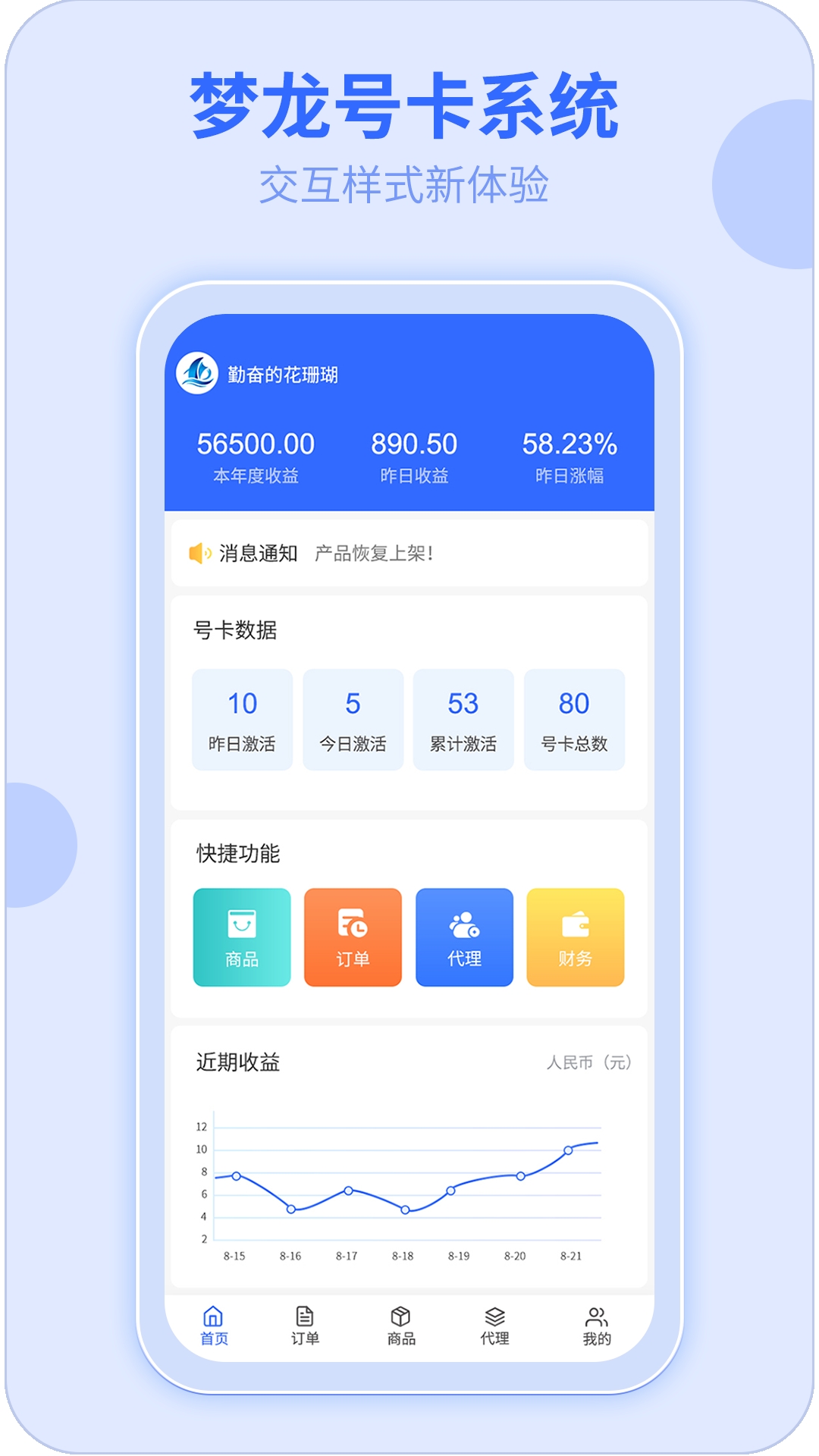 172号卡是一款分销管理工具,支持订单即时上传,系统稳定、用户可以通过APP轻松管理流量使用情况、收发短信和通话,并享受多渠道充值服务和高佣金代理机会。
