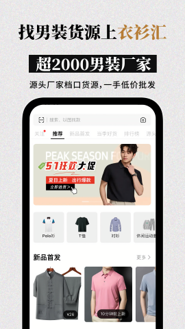 衣衫汇男装网批是服务于男装批发采购的软件app,该软件拥有价格极低、质量很好的大型批发市场,满足男装的所有需求,并且还能够搜索自己喜欢的男装进行购买,让你避免遇到价格很贵的商家购买,解决了众多男装批发的问题,同时24小时客服在线保障你的合法权益,赶快来下载体验吧。