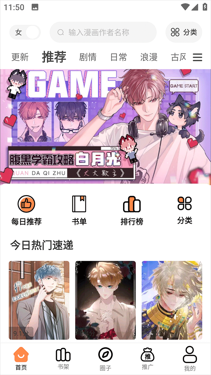 3、系统能根据用户们的阅读习惯智能推荐,每天都会给你推荐几本不错的漫画。