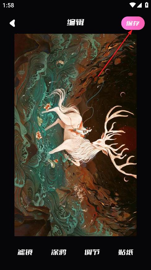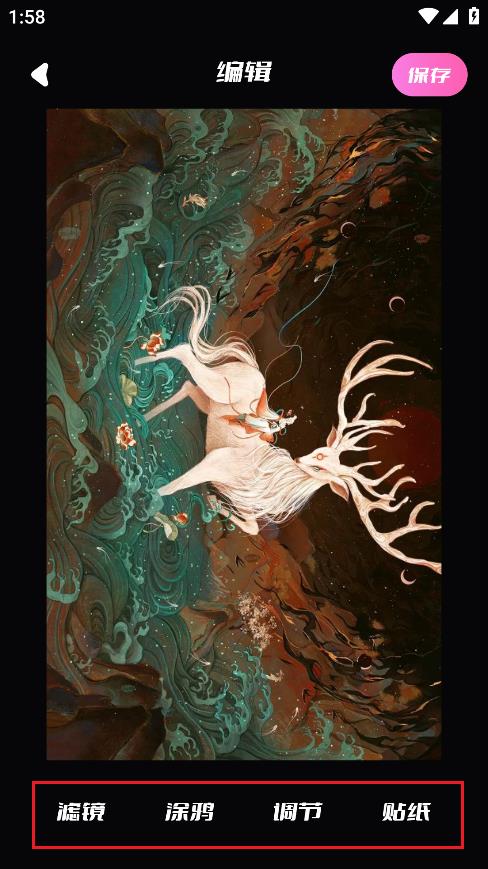 2.选择好要添加的壁纸后,并设置好、滤镜、涂鸦、调节、贴纸等。
