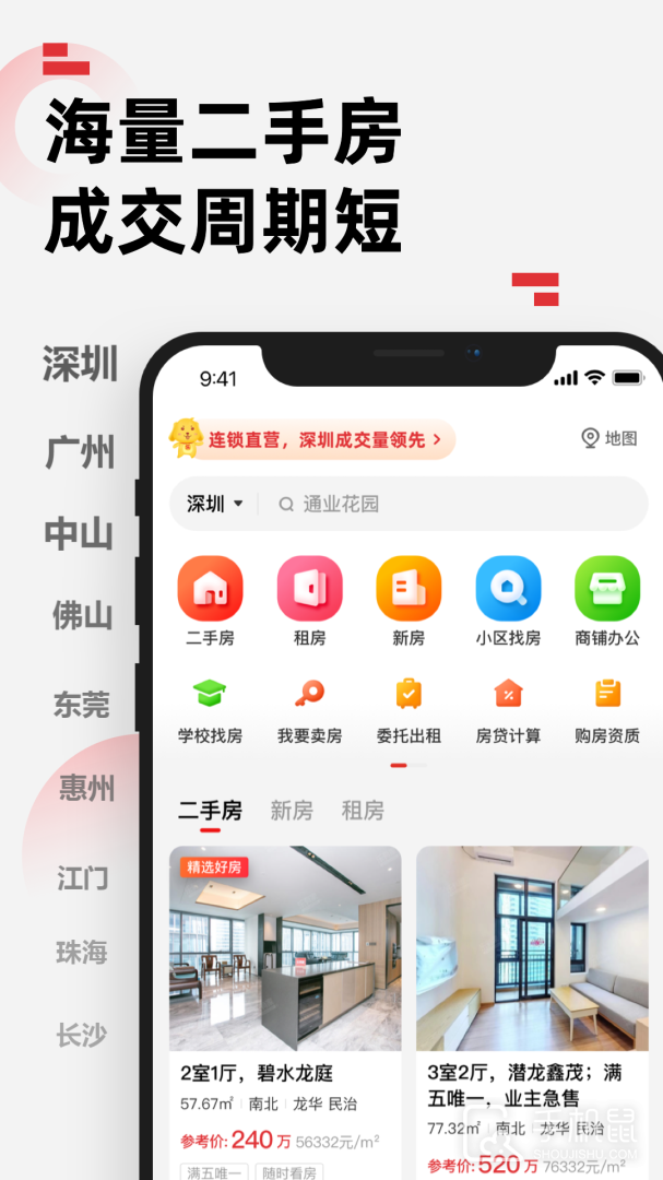4、在线找好房:二手房、新房、租房、公寓、商铺、写字楼等各类房源轻松查找;
