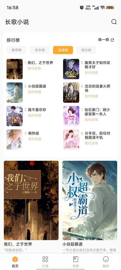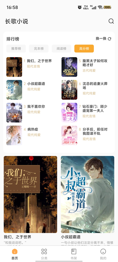 海量书库:涵盖言情、玄幻、都市、校园、武侠等多种类型,满足不同用户的阅读需求。
