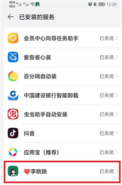 3、在已安装的服务中,找到李跳跳去广告这款应用,点击开启;