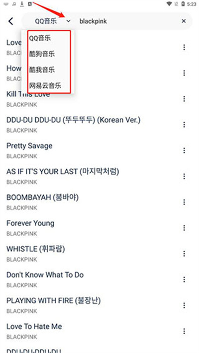 2.可以在这里输入想听的音乐或者是组合、歌手名,并且可以在四大音乐平台中搜索音源。