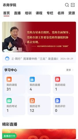 3、进入到直播中心可以对各种直播课程进行实时观看学习;