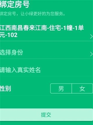 8、绑定房号,输入真实信息,点击提交。