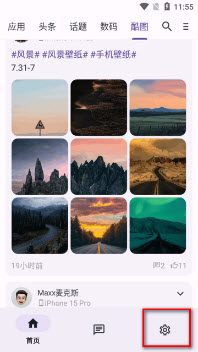 1.打开酷安10.5版app,点右下角的齿轮图标;