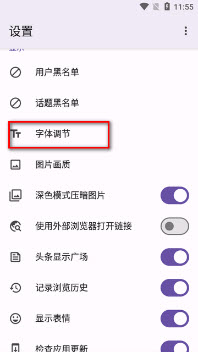2.进入设置页面,之后点击字体调节,得到弹窗;