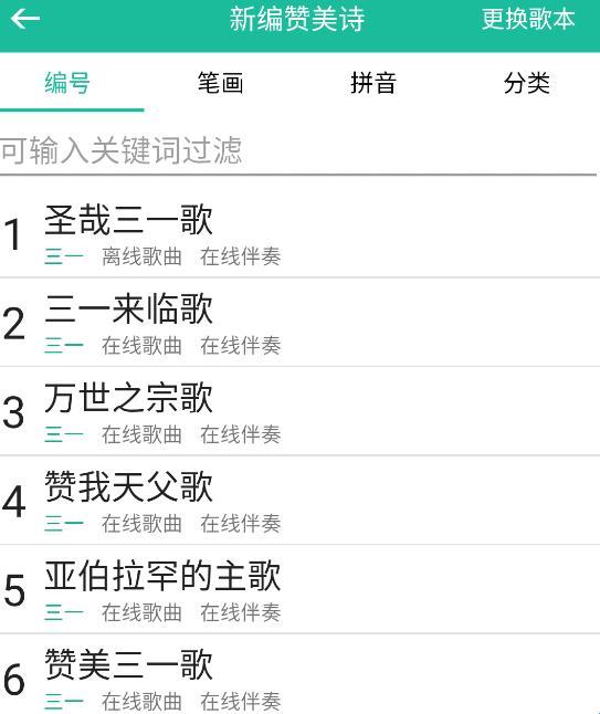 2、点击下方菜单栏中的“目录”,可以查看到该歌本中的诗歌目录。
