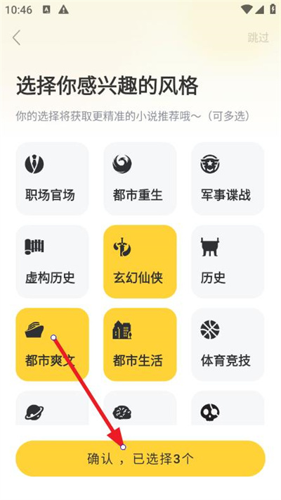 2.进入软件后,设置好你喜欢看的小说风格并点击确定。