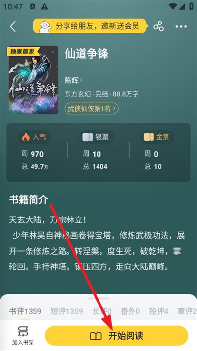 3.点击进入一本你喜欢的小说,并点击“开始阅读”即可看小说啦。
