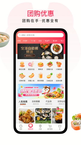 澳觅满足澳门居民手机线上团购美食,寻找自助餐优惠,澳门币手机支付多多种需求,收到本澳居民关注和下载使用。