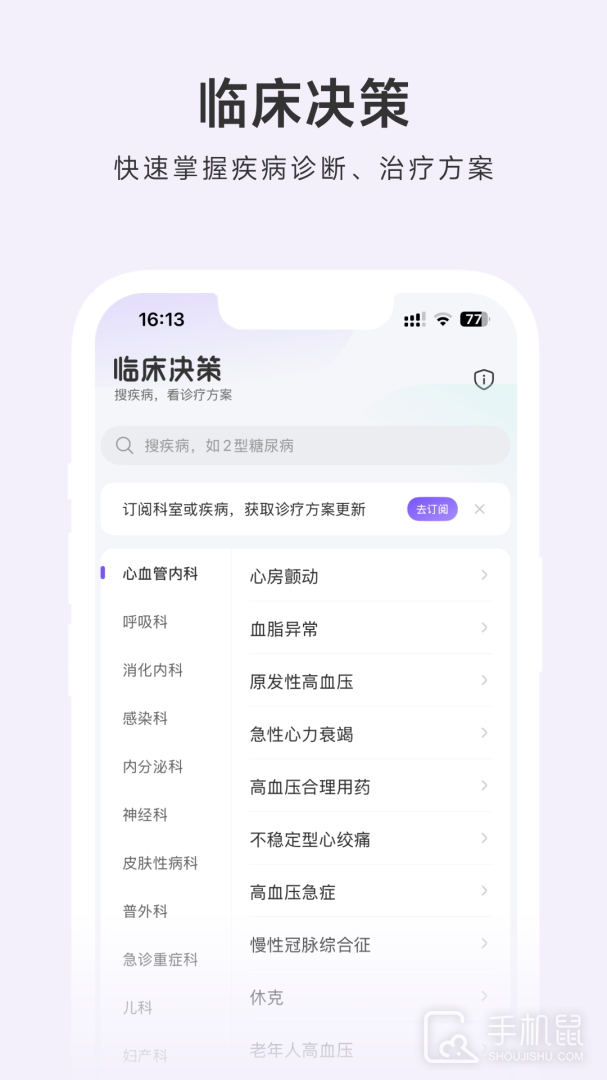 2、辅助搜索:可通过适应症、药理分类等多种方式查询,并可随时收藏个人常用药
