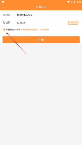 3、勾选我已阅读并同意,填写手机号码和验证码,点击注册即可。