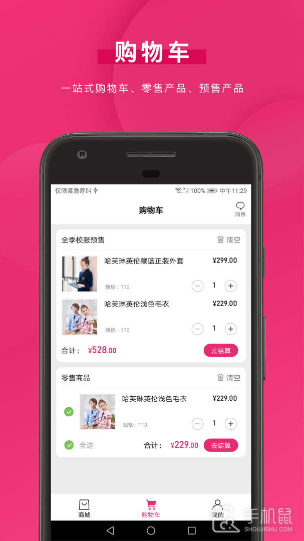 1、进到软件后,在商城界面点击“校服订购”界面。