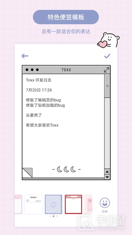 1.修复便签保存失败问题2.优化了体验3.更新了可爱贴纸本次更新依旧希望你喜欢