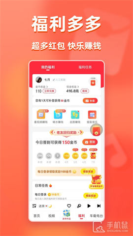 1、用户不仅能通过听歌、开宝箱赚取金币,还可以在“福利”页面通过喝水、走路、摇钱树等方式赚钱。