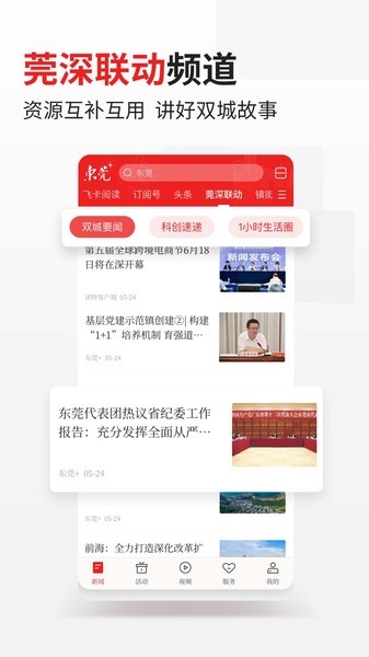 用户打开应用即可看到当前最热点的东莞本地资讯,通过依托东莞报业的新闻人才为您推荐当前最具爆点的报道。
