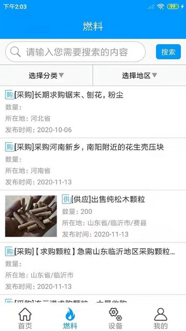 2.在软件中用户可以将燃料、设备的供求信息进行在线发布。