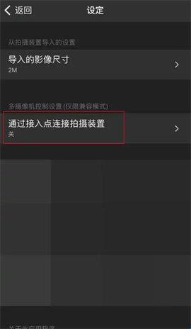 2、在“设置”界面,单击,选择“通过接入点连接拍摄设备”。