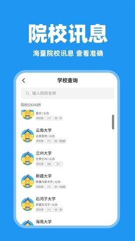 2、支持学校信息查询,帮助用户了解全国各地大学的工科情况和定位。