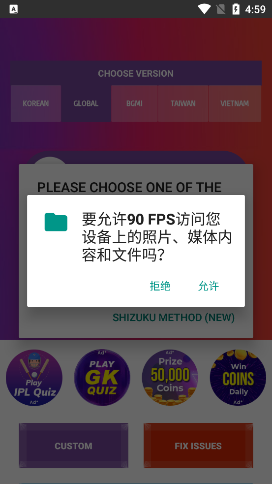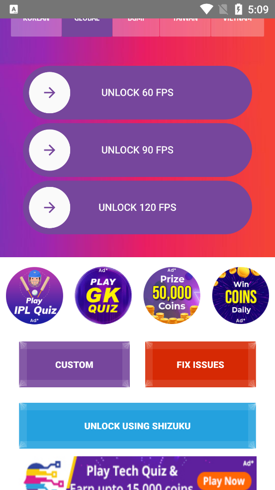 3.根据你的需求点击UNLOCK60FPS,90FPS,120FPS。