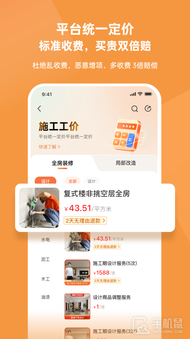 5、业主可以自由购买所需要的材料和服务,价格透明可比价,所选工人工钱了如指掌