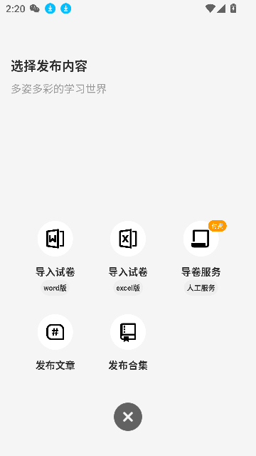 2、选择导入试卷(这里有多种方式导入,你可以选择你适合的)。