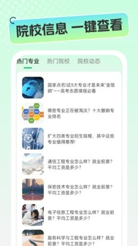 1、高考政策每年都有变化,APP提供实时的政策解读服务,第一时间更新招生政策、录取规则等重要信息;