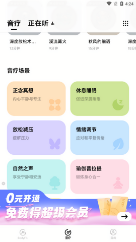 音疗课程:提供各种助眠音乐进行冥想练习,帮助用户舒缓压力,改善睡眠质量。