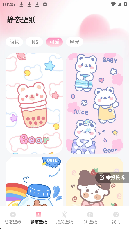 内置上线张精美壁纸资源,收录了动态壁纸、静态壁纸、3D壁纸和指尖壁纸,每天都能在里面免费下载换个新风格,操作简单,找到喜欢的壁纸一键就能设置,就能轻松打造属于你的个性手机界面哟。