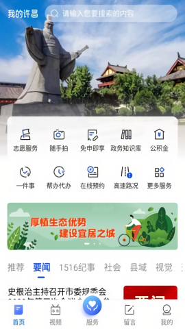 我的许昌是帮助本地居民解决日常生活烦恼和观看新闻资讯内容的软件平台,该软件能够让用户足不出户便可了解天下大事和本地发生的趣事新闻,并且还能够随时知晓最新的法律法规,通过该软件可以直接线上预约医疗服务、电子缴费等生活便利,深受本地居民的爱戴。