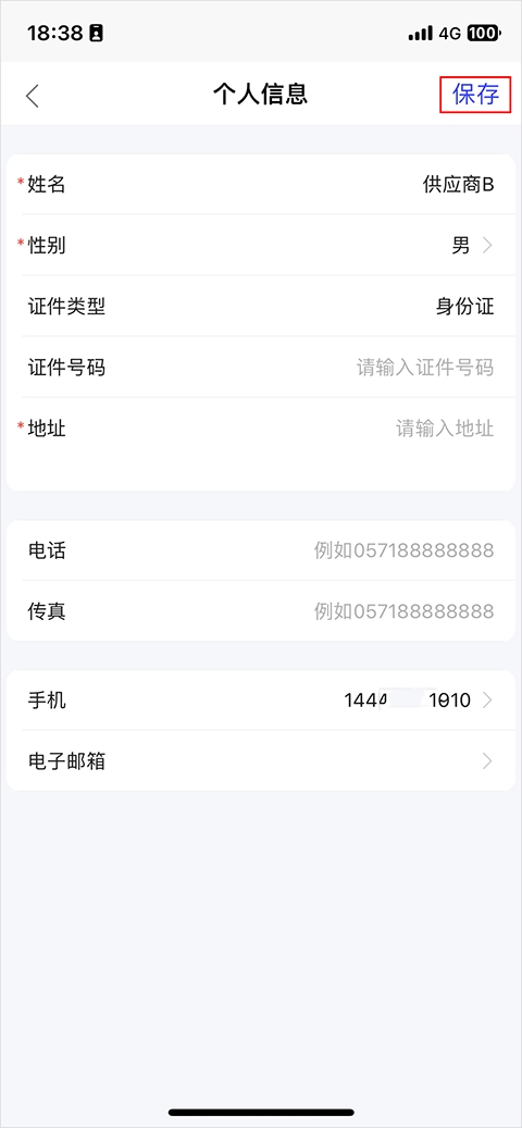 2、点击账号名后,可修改个人资料,修改完成后,点击保存