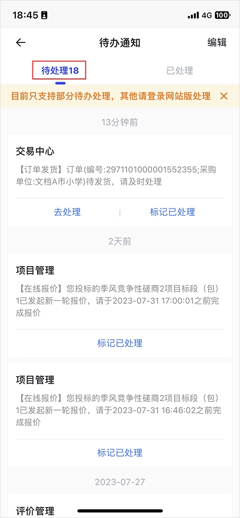 说明:如需操作发货、起草合同、结算等,请前往网页端进行操作。