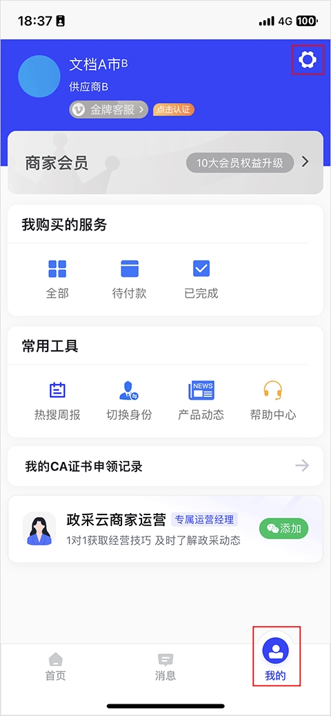 供应商可设置个人资料、查看商家会员种类及权益等。