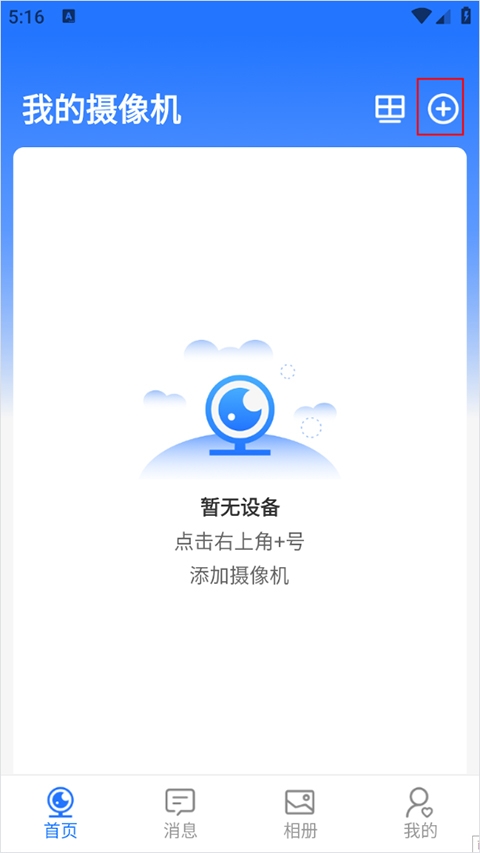 1、在app的主界面上点击右上角“+”号添加摄像机;