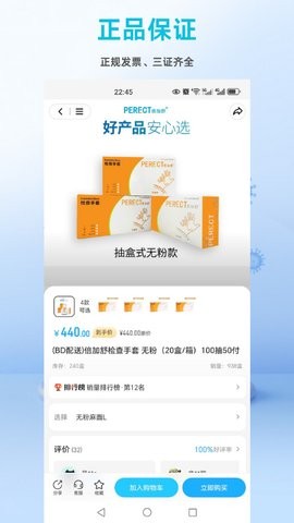 选择需要的医疗用品就可加入购物车中,勾选商品来一键结算下单,快捷购买。