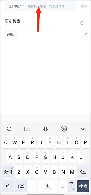 4、提供精准的多种关键词检索选选择,能看到搜索栏中全部内容下的标题、当事人以及争议焦点等多种选择;