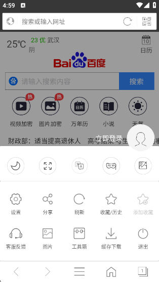 1、怎么收藏:打开私密浏览器免费版,点击“收藏/历史”,可即可看到收藏内容。