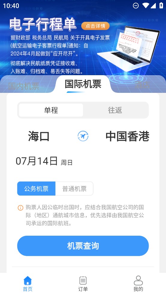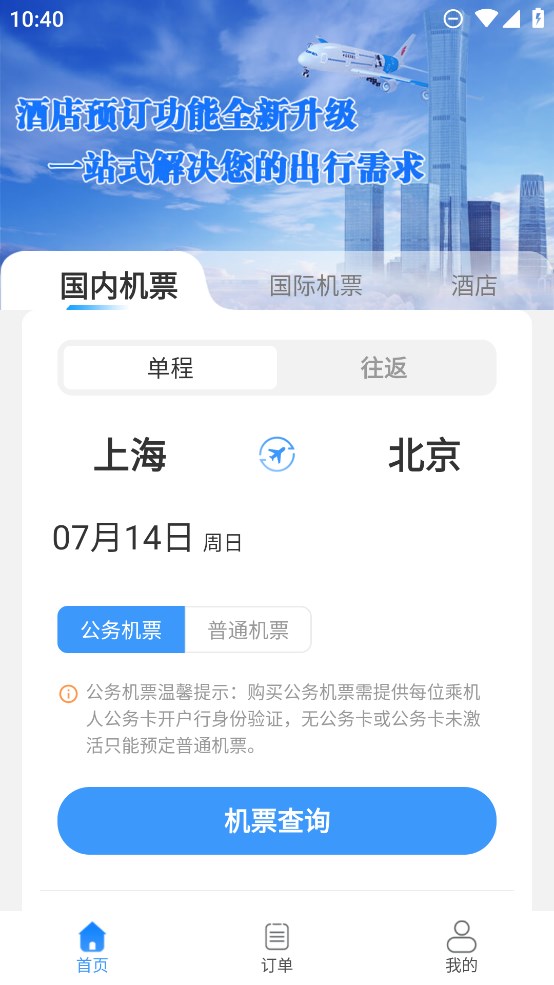 公务e行APP是一款为公务员出行提供便利的软件,支持在线进行出行机票.火车票以及酒店的预订,让你的出行变得更加的方便,而且不再用到线下排队购票,节省个人的出行时间,同时还能在线预订个人出行的入住酒店,获取到舒适的入住环境,而且软件汇集各个地区的特色美食,让你的饮食能够拥有更多的选择;公务e行软件会自动保存个人的出行票据,方便个人出差回来以后进行费用的报销,除此之外,对于个人的出行以及入住酒店的订单信息会实时的进行保存,随时都能对其进行查看,有需要的用户就赶紧来下载体验吧。