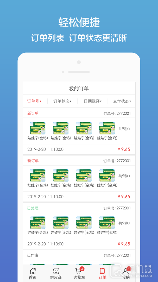 在药聚多app的个人中心页面,找到“我的订单”选项,点击进入后可以查看自己的订单列表,每个订单下方都会显示当前的订单状态,如待发货、已发货等。