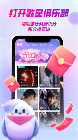 歌星俱乐部让用户能够享受海量曲库带来的多元音乐风格,参与在线KTV和歌唱比赛,与其他用户互动分享,帮助用户提升歌唱技艺,享受音乐带来的快乐。参与活动、完成任务后用户还能获得红包奖励和其他福利,快来体验吧。