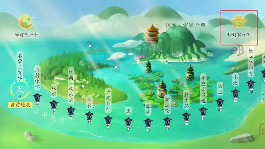 学习按照古诗的顺序来编排汉字的学习顺序,每学会十几个汉字,就能完整、流畅地阅读某首古诗,从而激发用户的成就感。