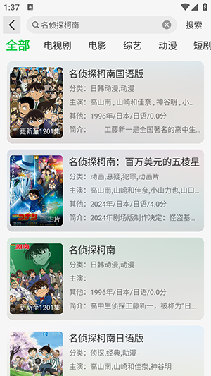 用户可以根据自己的需求搜索不同的电影,海量的影视资源实时更新。
